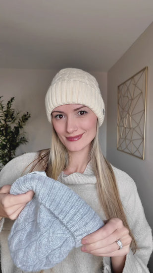 Large Stretch Satin Lined Cashmere Fur Knit Cuffed Winter Beanie Hat (Large)